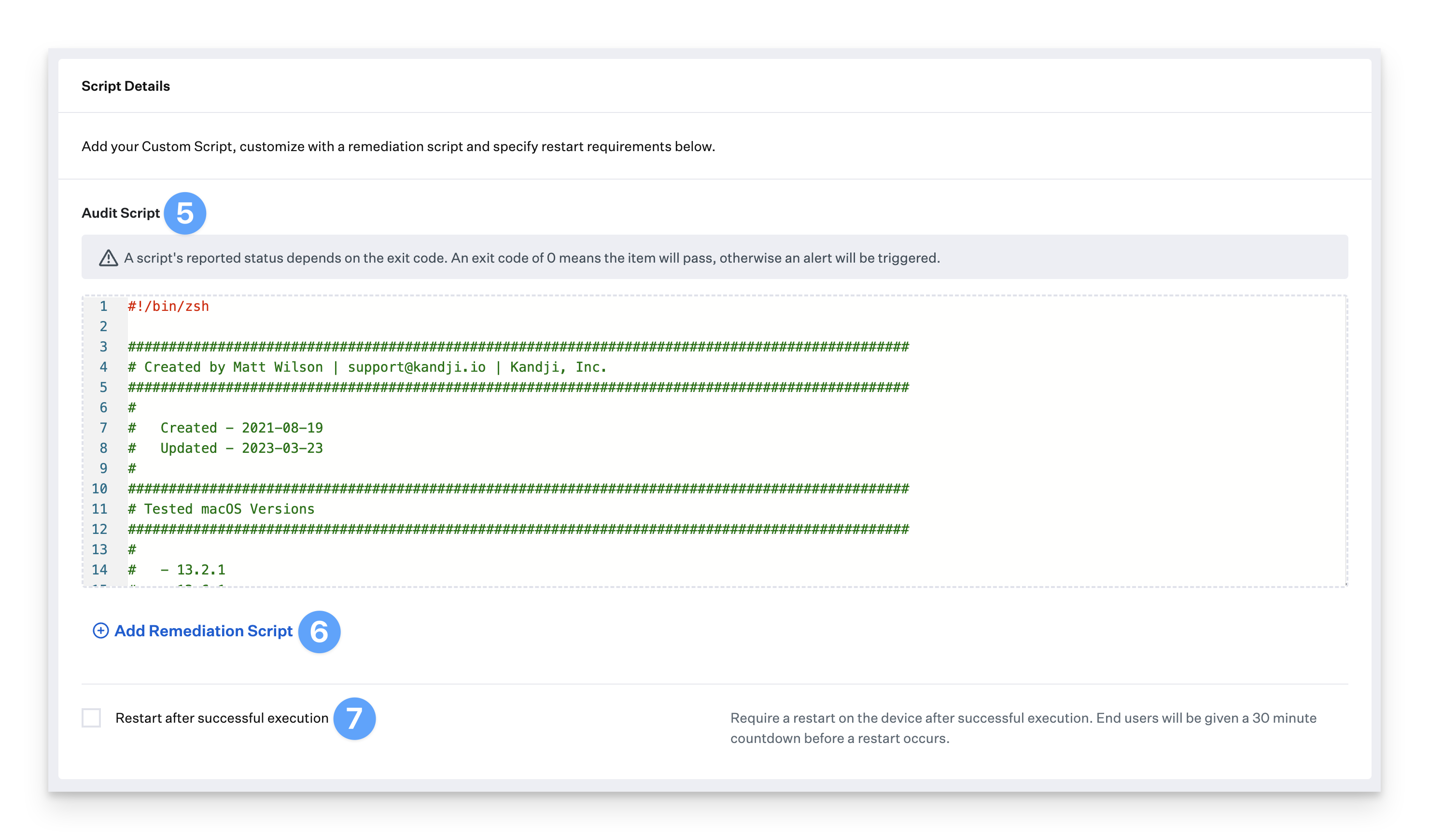 Kandji Audit Script field with script editor