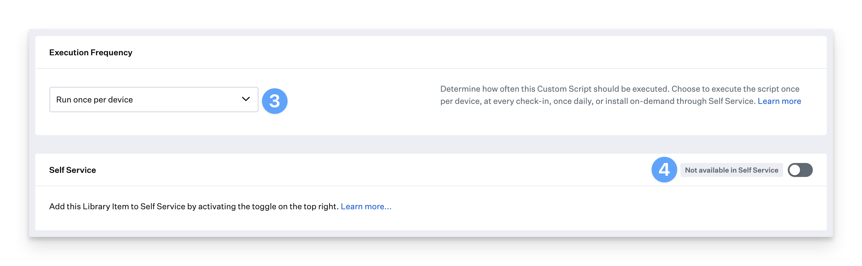 1. Set Execution Frequency to Run once per device. If the script fails, Kandji automatically retries on following check-ins.